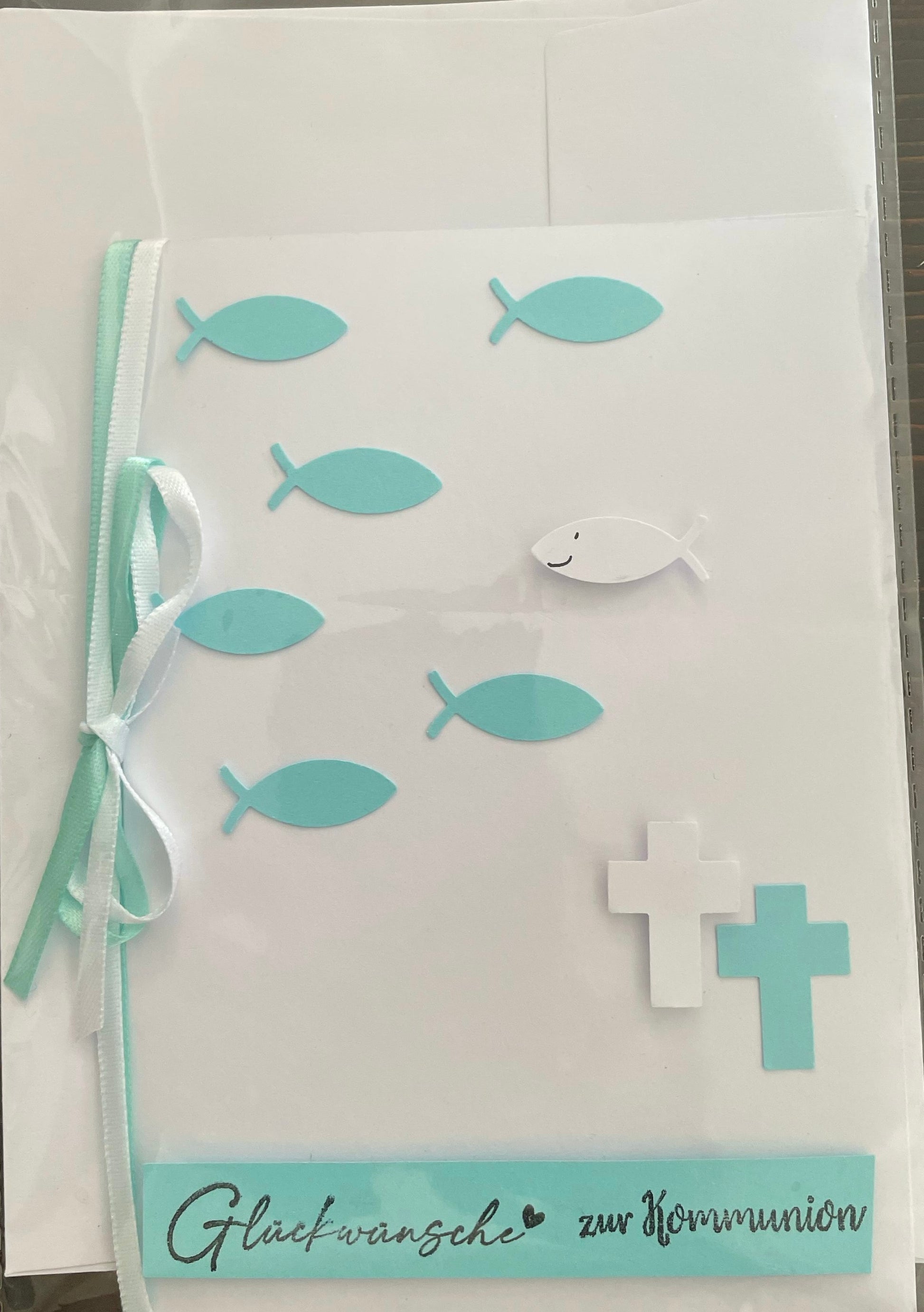 Handgefertigte Gruß- und Glückwunschkarten zur Kommunion.
