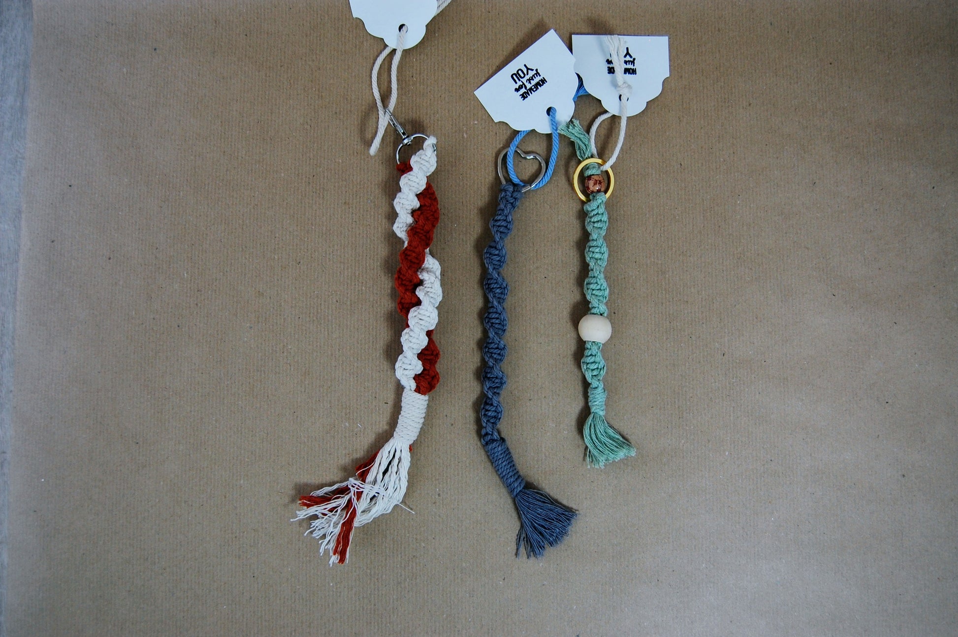 - Handgefertigter Schlüsselanhänger aus hochwertigem Makramee-Garn