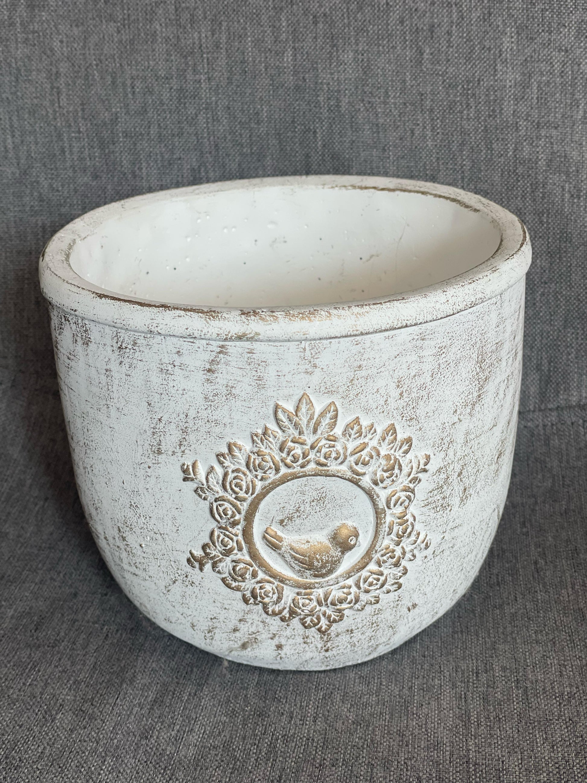 Zeitloser dekorativer Blumentopf / Übertopf in weiß-gold der Marke Clayre & Eef.